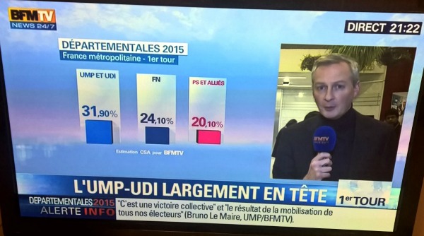 Dernière minute : l'UMP et l'UDI largement en tête au premier tour des départementales 2015