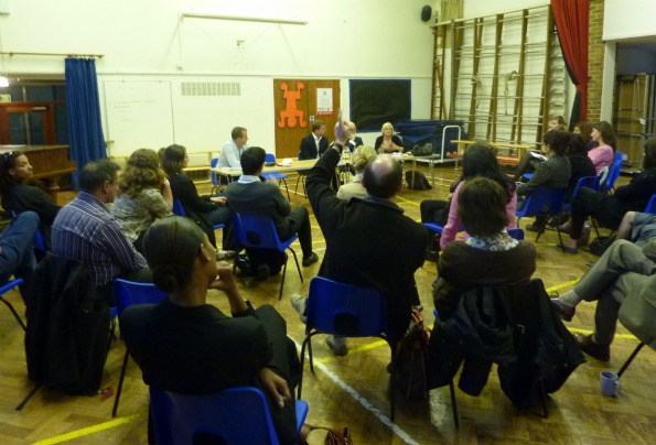 Les parents d'élèves, français et britanniques, ont été invités à donner leur avis sur un projet d'enseignement bilingue à Brighton, le 19 septembre 2011, en présence des responsables de l'ambassade de France.