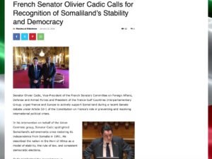Traduction française de l'article French Senator Olivier Cadic Calls for Recognition of Somaliland’s Stability and Democracy de Maxamuud Walaaleeye. Le...
