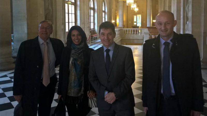 Au Sénat, avec les représentants de la Chambre française de commerce et d’industrie du Maroc (CFCIM). (g. à d.) Jean-Marie Grosbois, président ; Charafa Chebani, directrice du pôle CFCIM-Business France et resp. Etudes et Prospection ; Olivier Cadic ; Philippe Confais, directeur général.