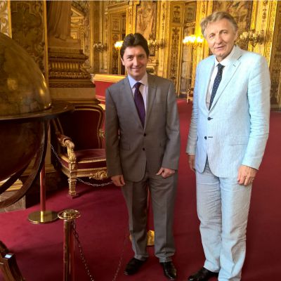 (g. à d.) Olivier Cadic, Moore et Patrick Fournier (Sté Laser Game). Ces deux concepteurs et fabricants de jeux laser, 100 % made in France, veulent m’associer à l’inauguration de leur nouveau parc d’attractions indoor “Yoo Moov” à Paris La Villette, en octobre prochain.