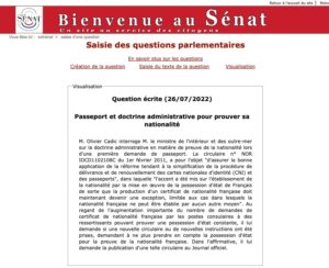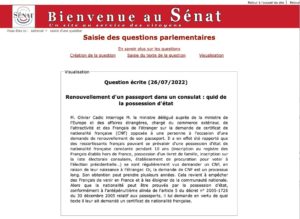 Devant la recrudescence constatée dans les postes diplomatiques et consulaires de l’exigence de CNF aux ressortissants français qui souhaitent renouvelés leur passeport, j’ai interrogé les trois ministères qui ont compétence en cette matière (Justice, Intérieur et Affaires étrangères). Respect de la hiérarchie des normes et transparence de la doctrine administrative sont impératifs pour ne pas abimer le lien national avec les Français de l’étranger.