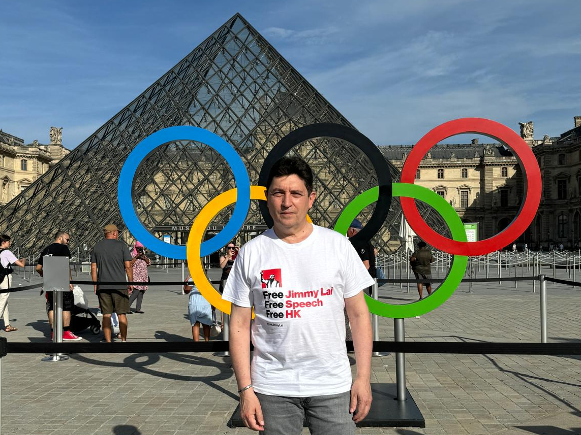 Dès mon retour dans la capitale, j’ai donc posé avec le t-shirt qu’il m’a offert, devant les anneaux olympiques, en souhaitant que tous ceux qui ont les yeux rivés sur les Jeux Olympiques n’oublient pas Jimmy Lai.