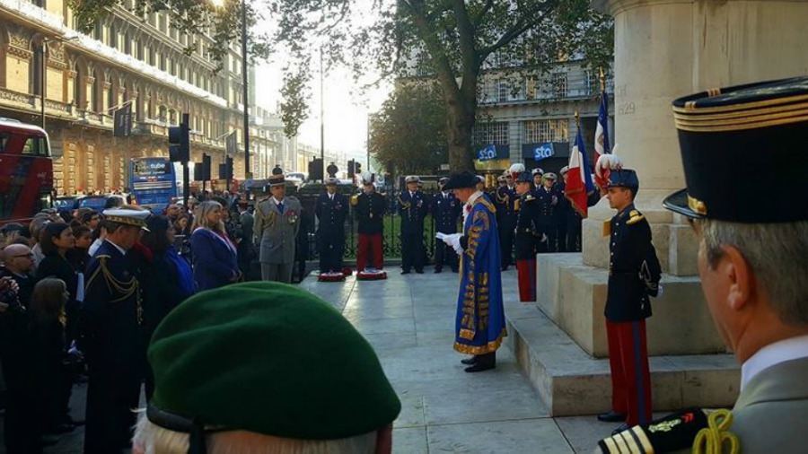 (A l’image) A Londres, devant la statue du Maréchal Foch, discours du Lord Mayor of Westminster, en présence Sylvie Bernann, notre ambassadeur.