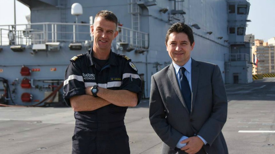 (A l’image) Avec le capitaine de vaisseau Eric Lavault, lors de la Journée de défense et citoyenneté pour nos jeunes compatriotes de 16 ans à bord du Dixmude, bâtiment de la marine nationale.