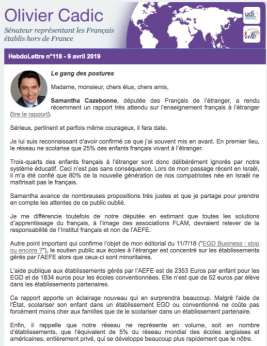 Posture politique de la gauche, d’abord, qui dans ses 30 propositions pour l’enseignement français à l’étranger, démontre qu’elle ne comprend pas le monde qui nous entoure. Elle continue à plaider pour un service public à l’étranger qu’elle n’a jamais su financer quand elle était au pouvoir.