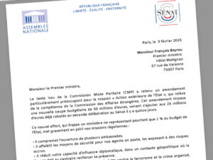 Aussi, je suis cosignataire d’une lettre adressée au Premier ministre pour lui demander de renoncer à cette coupe drastique qui provoquerait des conséquences dommageables en termes d’influence diplomatique, de sécurité ou encore de lutte contre le terrorisme.