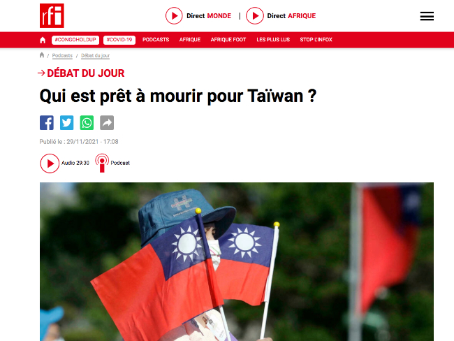 Ce 29 novembre, j’ai été invité par Adrien Delgrange dans son émission le Débat du jour sur RFI pour évoquer le soutien international grandissant dont bénéficie l’île de Taiwan, contre-modèle démocratique à l’autoritarisme chinois, où je me suis rendu début octobre avec notre délégation sénatoriale.