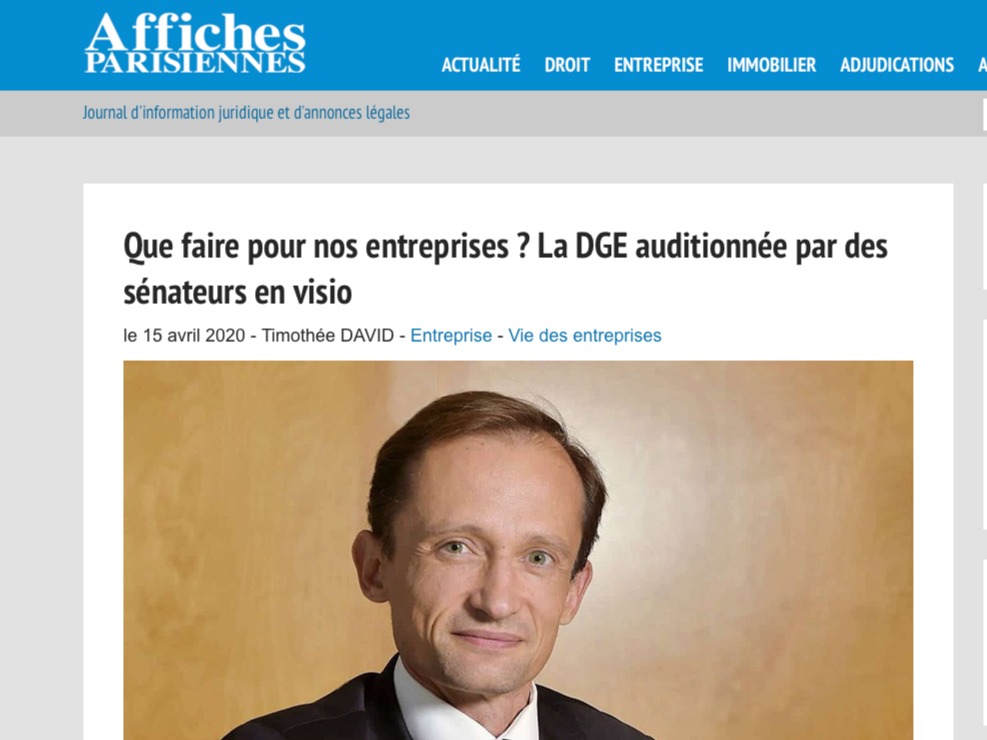 Que faire pour nos entreprises ? La DGE auditionnée par des sénateurs en visio (Affiches parisiennes – 15/04/2020)