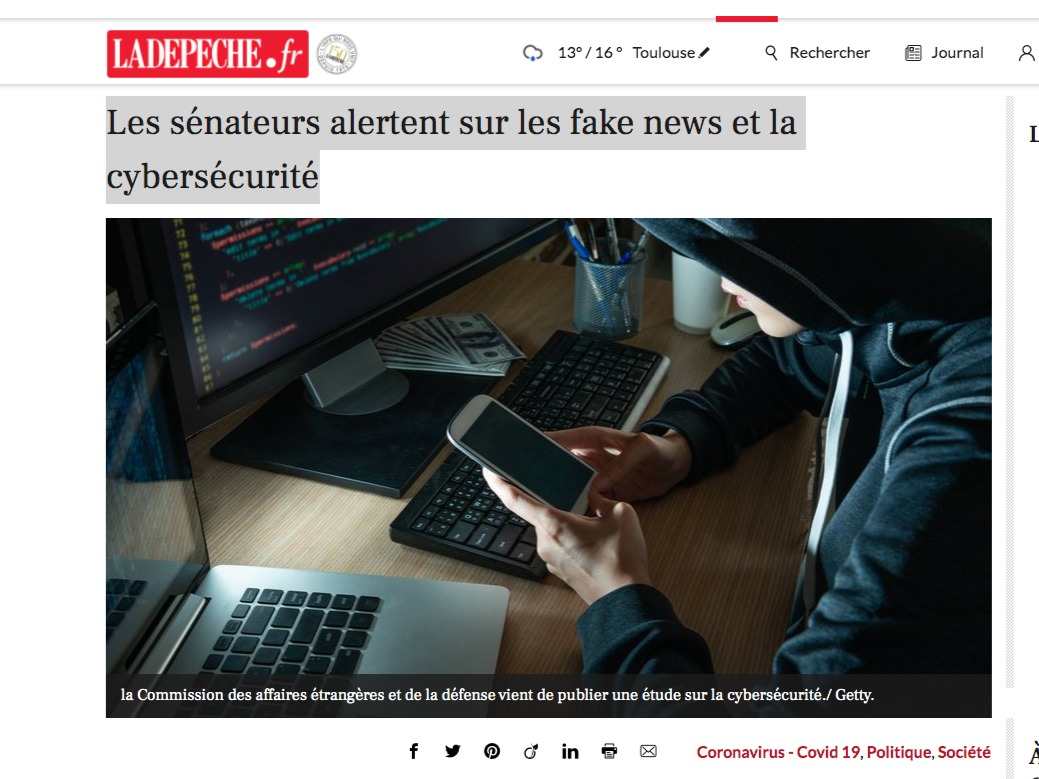 Les sénateurs alertent sur les fake news et la cybersécurité (La Dépêche – 20/04/2020)