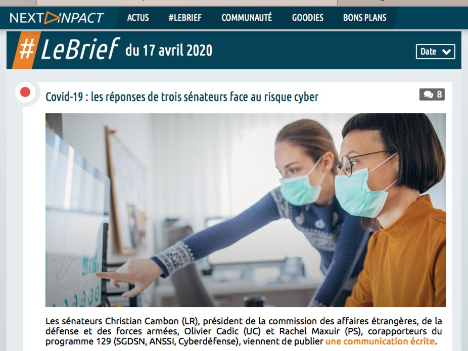Covid-19 : les réponses de trois sénateurs face au risque cyber (Next Impact – 17/04/2020)