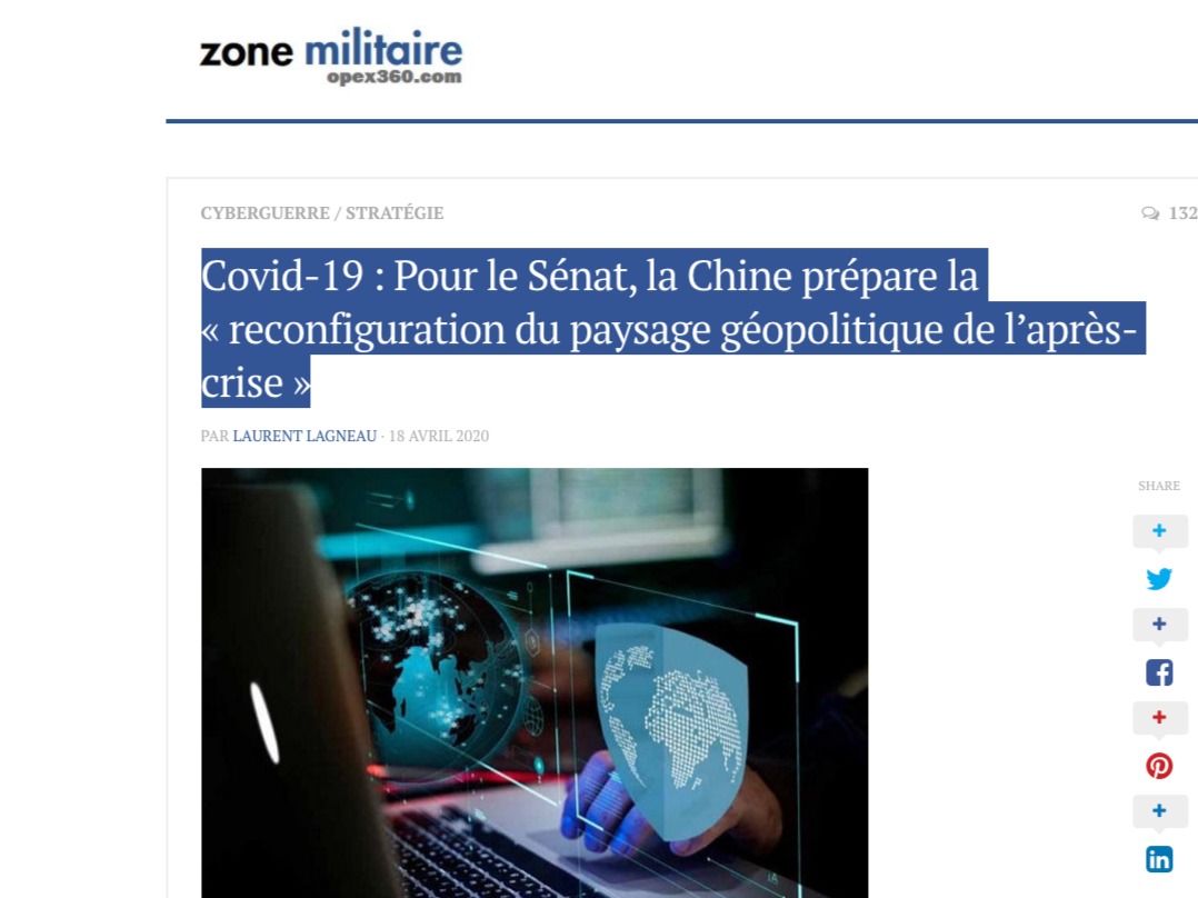 Covid-19 : Pour le Sénat, la Chine prépare la « reconfiguration du paysage géopolitique de l’après-crise » (Zone militaire – 18/04/2020)