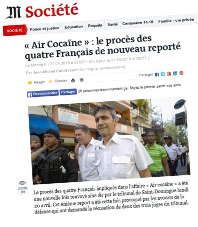 Article dans Le Monde : « Air Cocaïne » : le procès des quatre Français de nouveau reporté, du 21 avril 2015