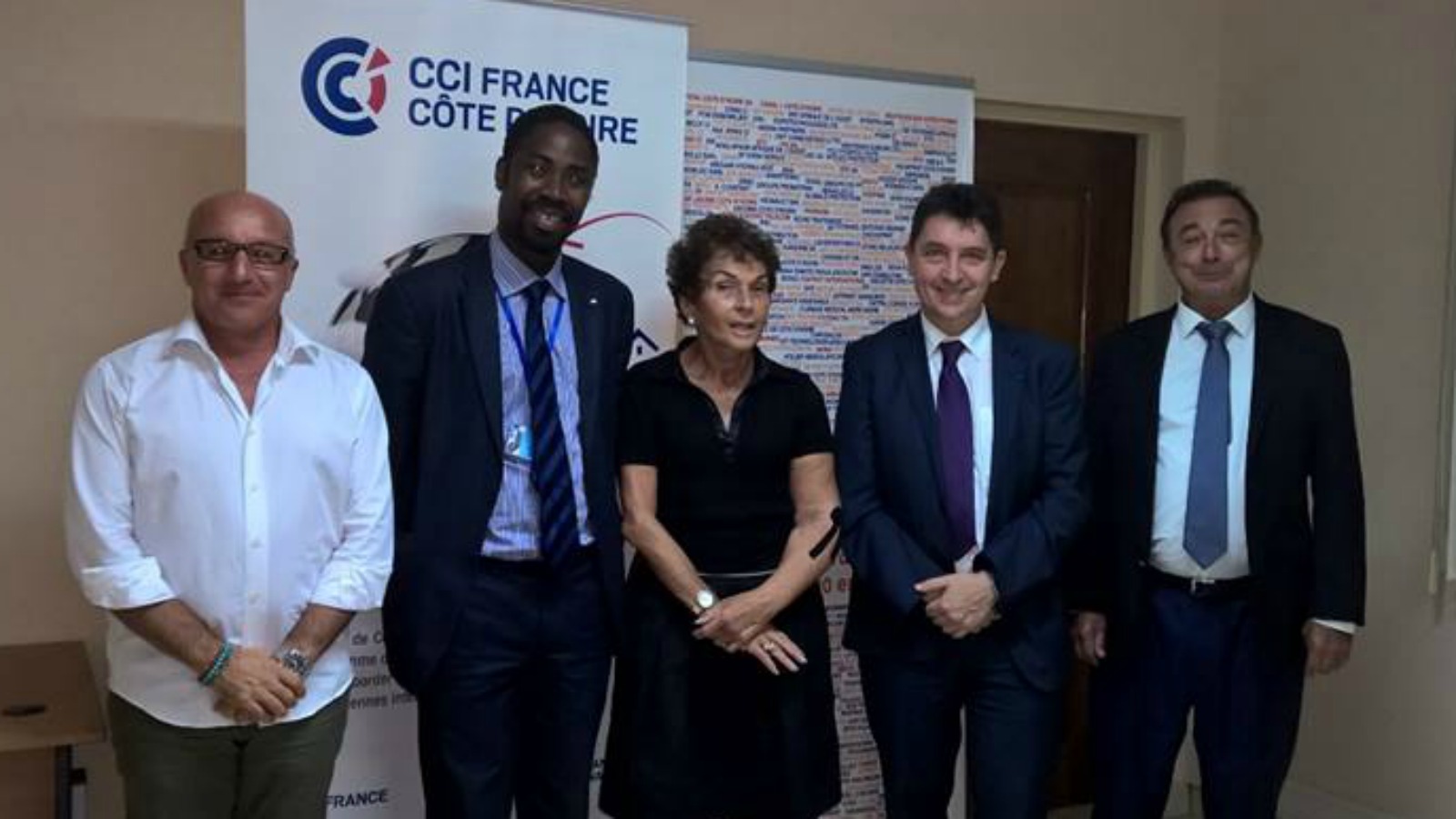 Photo : Jean-Louis Giacometti (DG de la CCI), Teyi Lawson (Axa Côte d’ivoire), Martine Ducoulombier, Olivier Cadic, Jean-Louis Legras (président de la CCI).