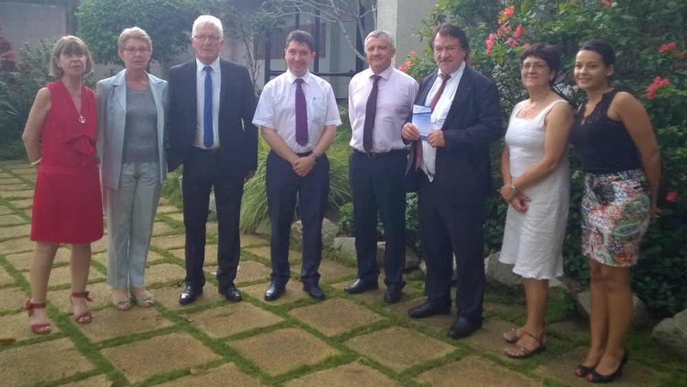 Photo : Georges Serre, ambassadeur France en Côte d’ivoire ; Martine Ducoulombier, présidente de l’UFE Côte d’Ivoire et Olivier Cadic.