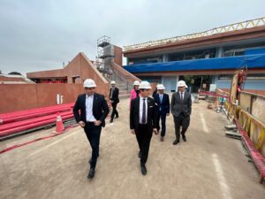 Retour au lycée franco-péruvien comme promis, cinq mois après mon précédent passage (compte-rendu) pour constater l’avancée spectaculaire des travaux, en compagnie de Nathalie Kennedy, ambassadrice, Vincent Sicet, président du conseil consulaire et Jean-Philippe Gavois, Premier conseiller.