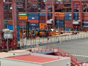 Visite du port de Callao, opéré par la société émiratie, DP World. Cette entreprise a investi 400 millions de dollars pour doubler sa capacité, avec la mise en service d’un nouveau quai, inauguré le 20 juin dernier.