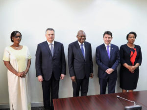Entretien avec le président du Sénat Augustin Iyamuremye et les vice-présidentes Nyirasafari Espérance et Dr Mukabaramba Alvera, en présence de l’ambassadeur de France Antoine Anfré.