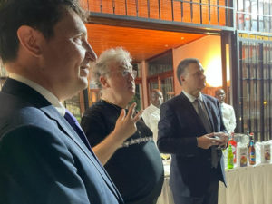 En conclusion d’une journée à l’agenda très dense, j’ai participé au cocktail à la Résidence de France organisé par l’ambassadeur à l’occasion de la visite au Rwanda des directeurs du festival du film francophone d’Angoulème, Marie-France Brière et Dominique Besnehard, en présence de la communauté culturelle de Kigali.