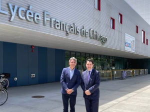 Tous mes remerciements à Aline Delpierre et Patrick Bourbon (à l’image), conseillers des Français de l’étranger du Midwest, qui m’ont accueilli et accompagné lors de toutes les étapes du programme qu’ils m’ont préparé. Ce déplacement à Chicago fut riche d’enseignements auprès des acteurs de notre communauté éducative, économique et culturelle.
