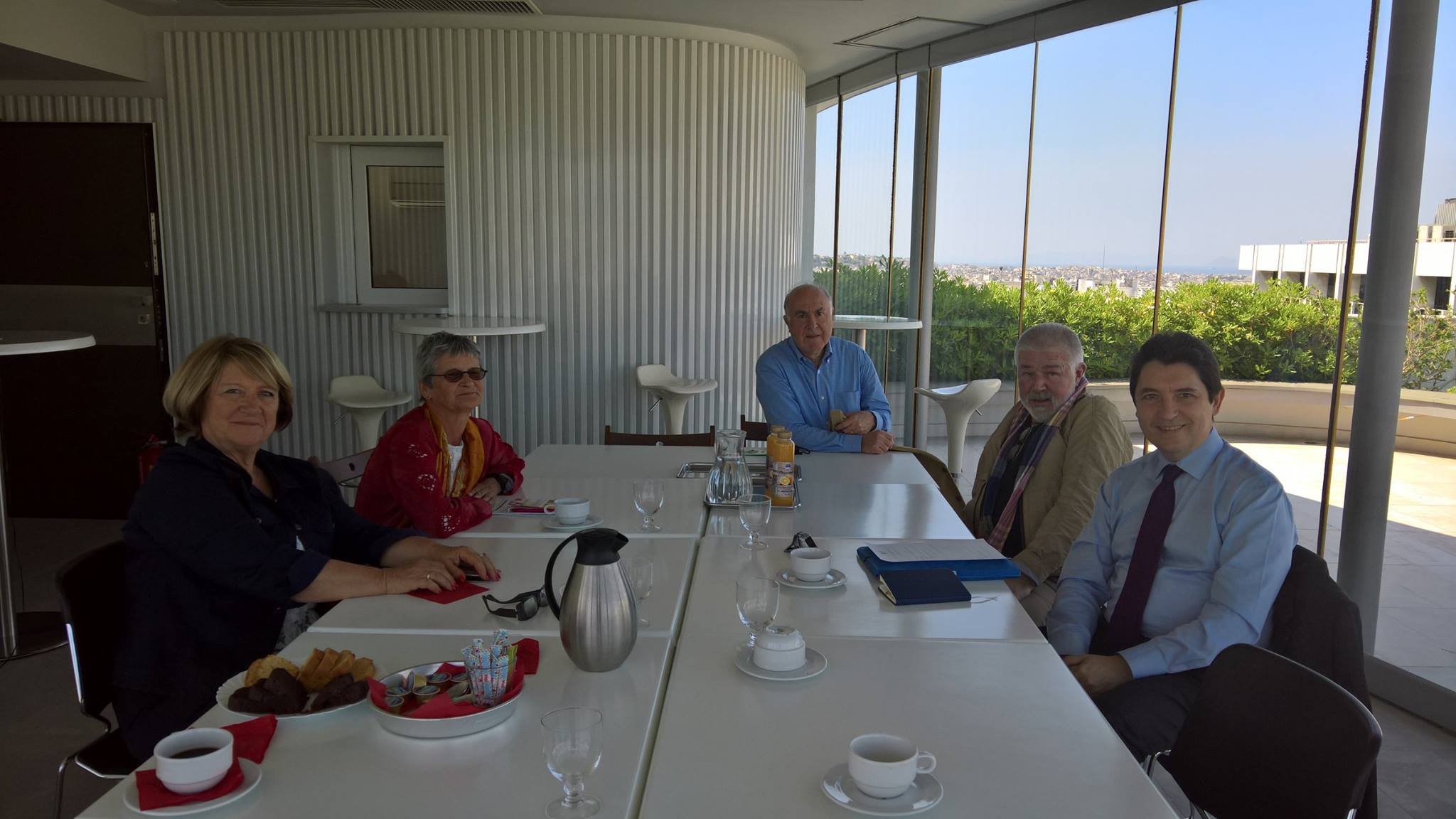 Rencontre avec les quatre conseillers consulaires pour Athènes (g. à d.) : Nelly Muller, Chantal Picharles, Basile Delivorias et Hervé Leboucher.