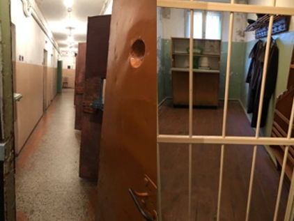 La prison intérieure du KGB a aussi été utilisée par les nazis et comprend un local d’exécution, où les condamnés recevaient une balle dans la tête. Les traces d’impact sont visibles sur les murs.