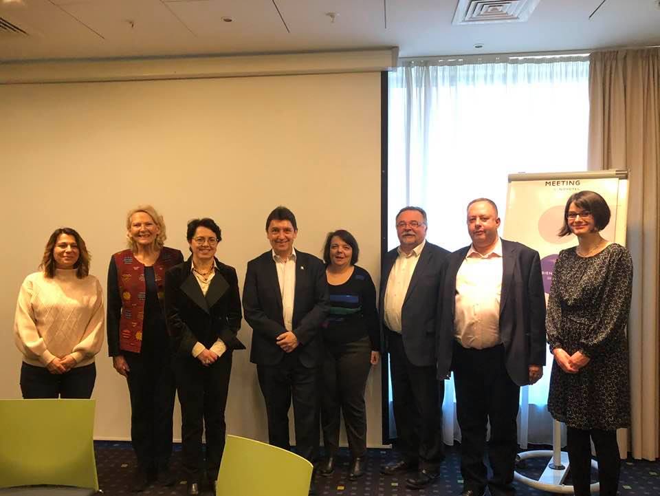 Les participants étaient Florence Llopis (proviseure du lycée français), Isabelle Chandavoine-Urbaitis (cheffe d’îlot pour Vilnius), Jacky Clavreuil (UFE), Bertrand Jacob (AdFE), Caroline Paliulis (association « Lituanie-France »).