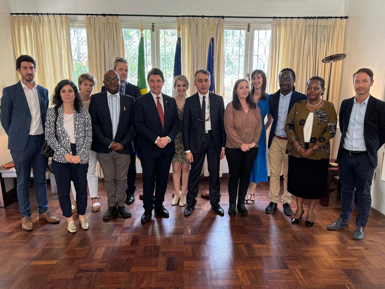Deux ans après mon précédent passage (compte-rendu), je remercie Nabil Hajlaoui, ambassadeur de France en Tanzanie, de m’avoir à nouveau accueilli à la Résidence de France en organisant un déjeuner avec des représentants de la communauté d’affaires français et tanzaniens, en présence d’Aude Demoustier, présidente du conseil consulaire en Tanzanie, Christophe Darmois, président de la chambre de commerce, et Annie Biro, cheffe du service économique.