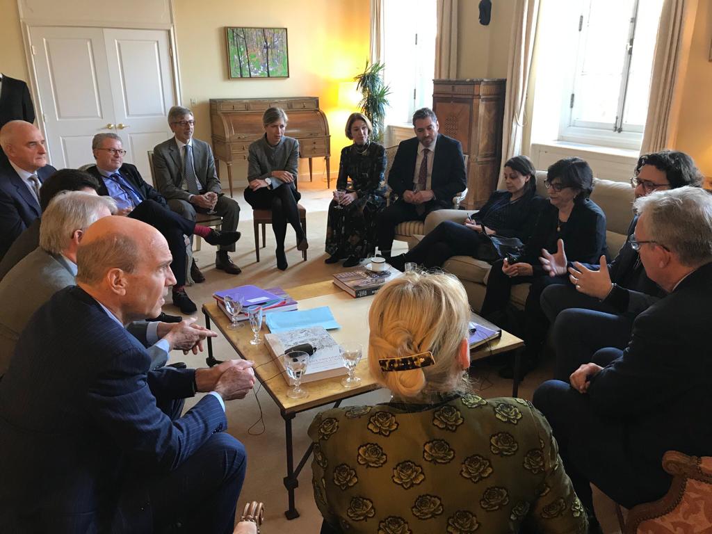 A l’invitation d’Anne-Claire Legendre, consule générale de France à New York, notre mission a participé à une réunion avec des personnalités du monde des médias et des universitaires pour évoquer la politique intérieure américaine.