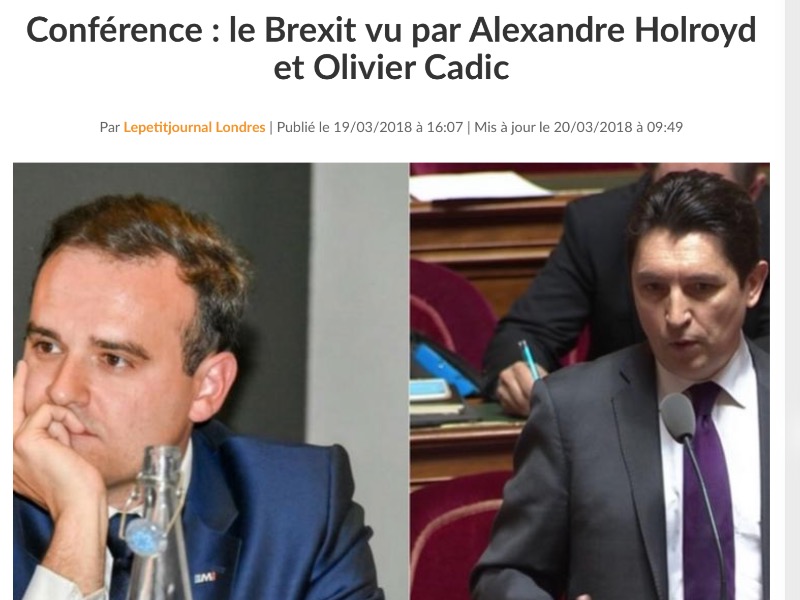 Article dans LePetitJournal.com : “Le Brexit vu par Alexandre Holroyd et Olivier Cadic”