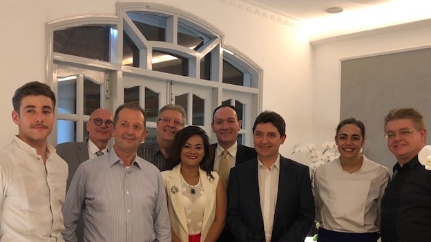 Je suis en compagnie d’Edouard George, président UFE Vietnam ; Patrick Molko, conseiller consulaire Vietnam ; Bernard Verneveaux, responsable UFE Delta du Mékong et des membres de l’UFE Vietnam.