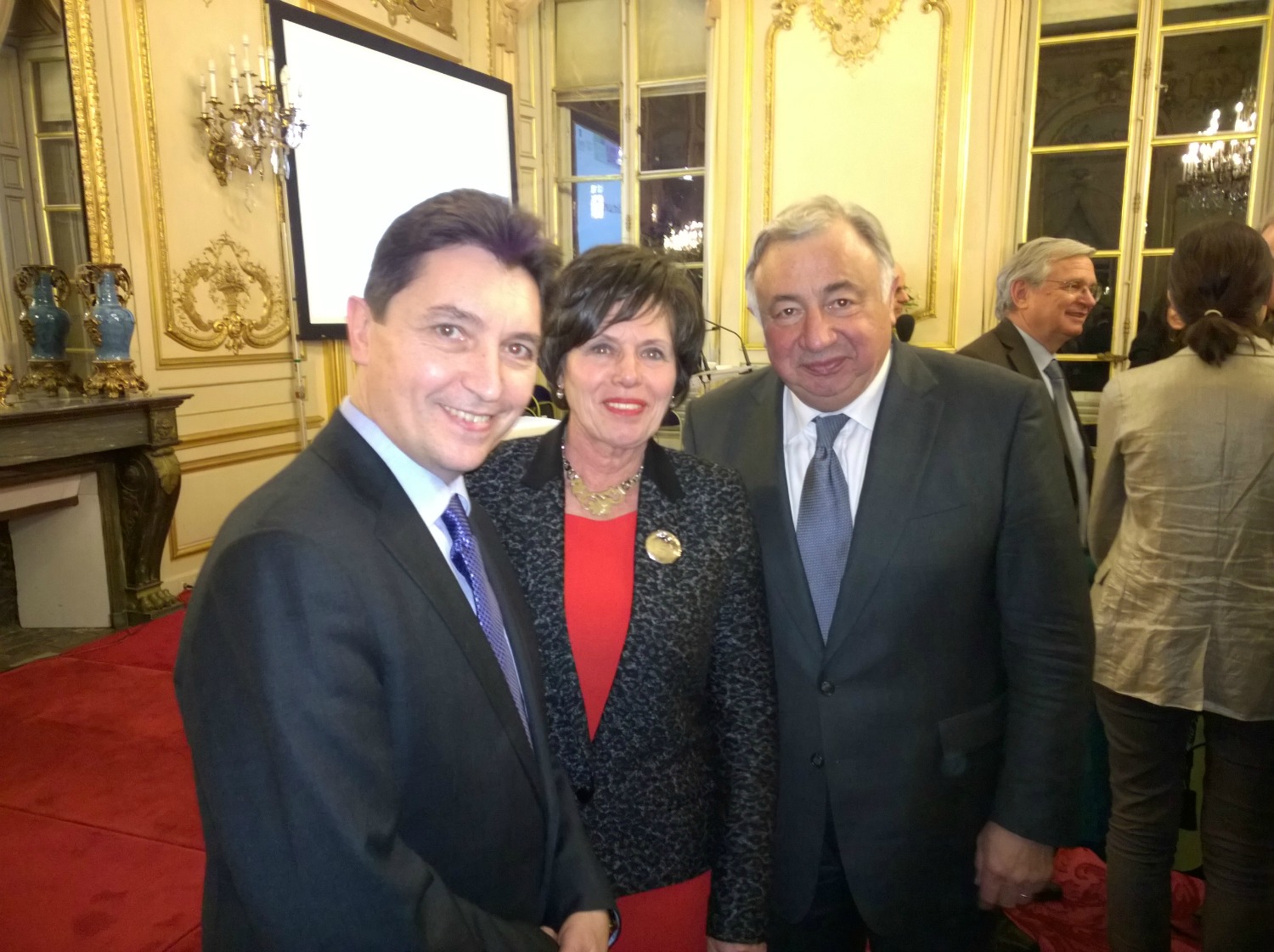 J’ai assisté à la remise des prix en compagnie d’Elisabeth Lamure, présidente de la délégation aux Entreprises (au centre de l’image). Cette entité sénatoriale est née de l’initiative du président Gérard Larcher afin d’identifier et de lever les obstacles au développement de nos entreprises. Devant l’assistance, le président a fait un vibrant plaidoyer en faveur de l’innovation et de l’entrepreneuriat.