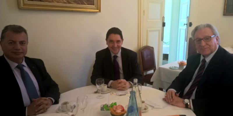 Au Liban, Jean-Louis Borloo a laissé un excellent souvenir, car il fut l’initiateur du projet régional d’un centre pour l’information et la formation aux métiers de l’eau (CIFME) (article à suivre). J’œuvre dans le prolongement de son action, c’est pourquoi j’ai organisé une seconde réunion à Paris avec Jean-François Donzier, directeur général de l’Office International de l’Eau (à droite sur l’image) afin d’aider Fadi Comair (à gauche) à faire aboutir le projet du CIFME