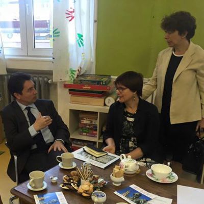 (g.à d.) Olivier Cadic, Clarit Alofs (proviseure), Béatrice Salmon (conseillère culturelle et scientifique de l'ambassade de France).