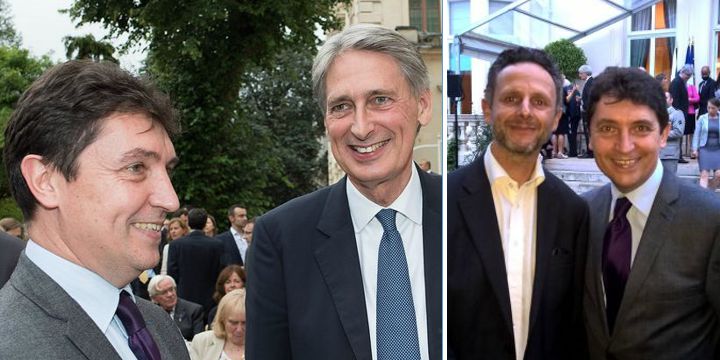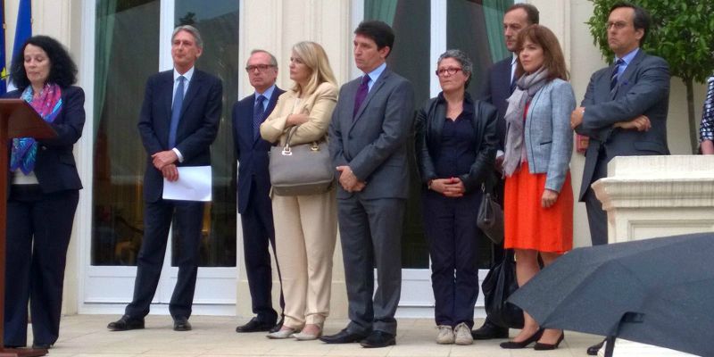 (image de gauche) Philip Hammond, ministre britannique des Affaires étrangères, qui revenait tout juste des négociations sur l’Iran à Vienne, a prononcé un discours célébrant la coopération franco-britannique.