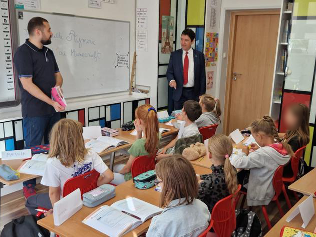 Visite de l’école maternelle française créée en 2001 par Alain Mompert, consul honoraire de Gdansk, avec 4 élèves et qui en compte désormais 117.