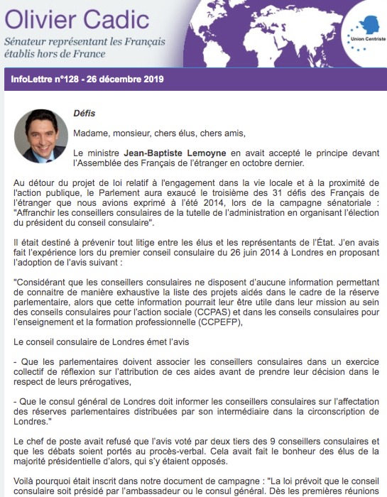 La consultation collective, d’abord. J’ai partagé dans l’hémicycle le courrier de Frédéric Petit, député des Français de l’étranger, qui s’est élevé contre le fait que les agents de l’administration consulaire attribuent cette aide sur leur seule évaluation et qu’ils oublient que les conseils consulaires ont vocation à être consultés sur toutes les questions relatives à la protection sociale (lettre à JY Le Drian du 17 juin).