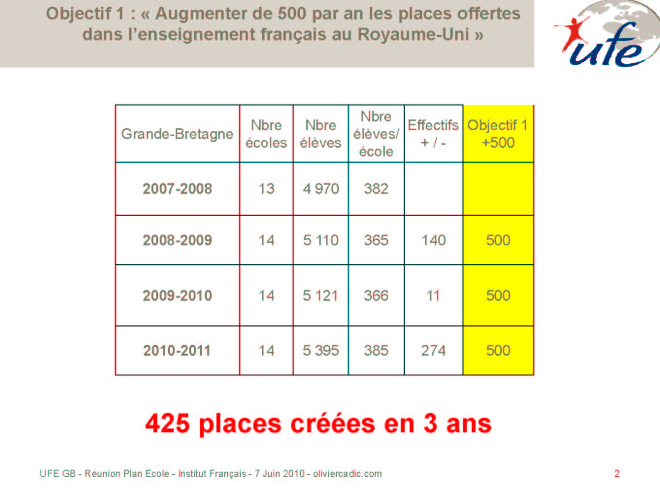 Quant à l’axe 3, on ne peut que se réjouir de l’élan apporté par le programme Flam dans toute l’Angleterre. Une 39ème “Petite école du samedi” va ouvrir ses portes dans quelques semaines à Manchester (lire : “Ouverture d’une Petite école du samedi à Manchester” du 16 juillet 2011). Le comité a également félicité notre sénatrice Joëlle Garriaud Maylam, pour avoir obtenu 8000€ sur la réserve parlementaire afin de financer une méthode d’apprentissage du français pour les centaines d’enfants binationaux fréquentant les écoles Flam (lire : “Joëlle Garriaud-Maylam, tout feu tout FLAM” du 19 avril 2010).
