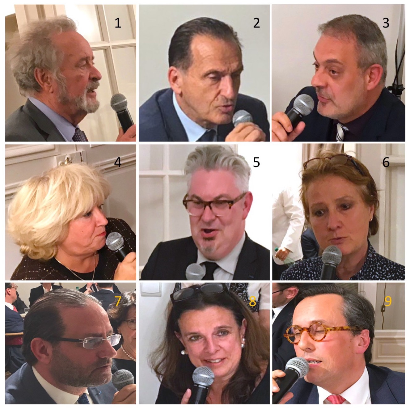 Les élus ont été nombreux à vivifier et enrichir les débats, parmi lesquels : (1) Francis Huss, élu AFE Péninsule ibérique et président de TV5 Monde ; (2) Alain-Pierre Mignon, élu AFE Asie-Océanie et président de la CFE ; (3) Benoit Mayrand, CC Roumanie Moldavie ; (4) Régine Prato, élue AFE Afrique du Nord ; (5) Marc Albert Cormier, CC Ontario Manitoba ; (6) Madeleine Ben Naceur, CC Tunisie-Libye ; (7) Roland Raad, CC Arabie Saoudite ; (8) Geneviève Beraud Suberville, élue AFE Amérique latine et Caraïbes ; (9) Stéphane Rambosson, CC Londres.