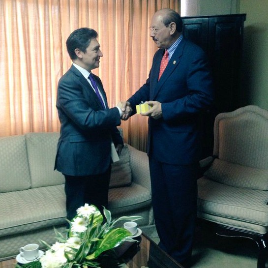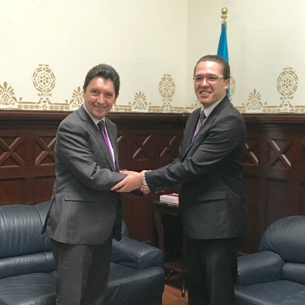 Représentant permanent du Guatemala devant les Nations-Unies pendant 6 ans, puis ambassadeur au Paraguay et en Argentine, Carlos Ramiro Martinez est le ministre en charge des Relations extérieures de son pays. J’ai pris avantage de cette rencontre pour le remercier de l’implication du Guatemala pour contribuer au succès de la COP21 et le féliciter pour l’action exemplaire de son pays en matière de lutte contre la corruption.