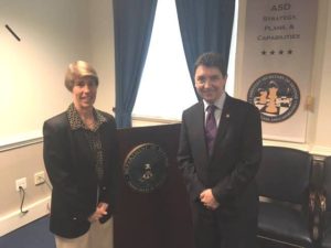 J’ai été reçu au Pentagone par Theresa Whelan, Principal Deputy Assistant, Secretary of Defense for Homeland Defense and Global Security, en présence de Simond de Galbert, conseiller pour les Affaires stratégiques et de Sécurité à l’ambassade.
