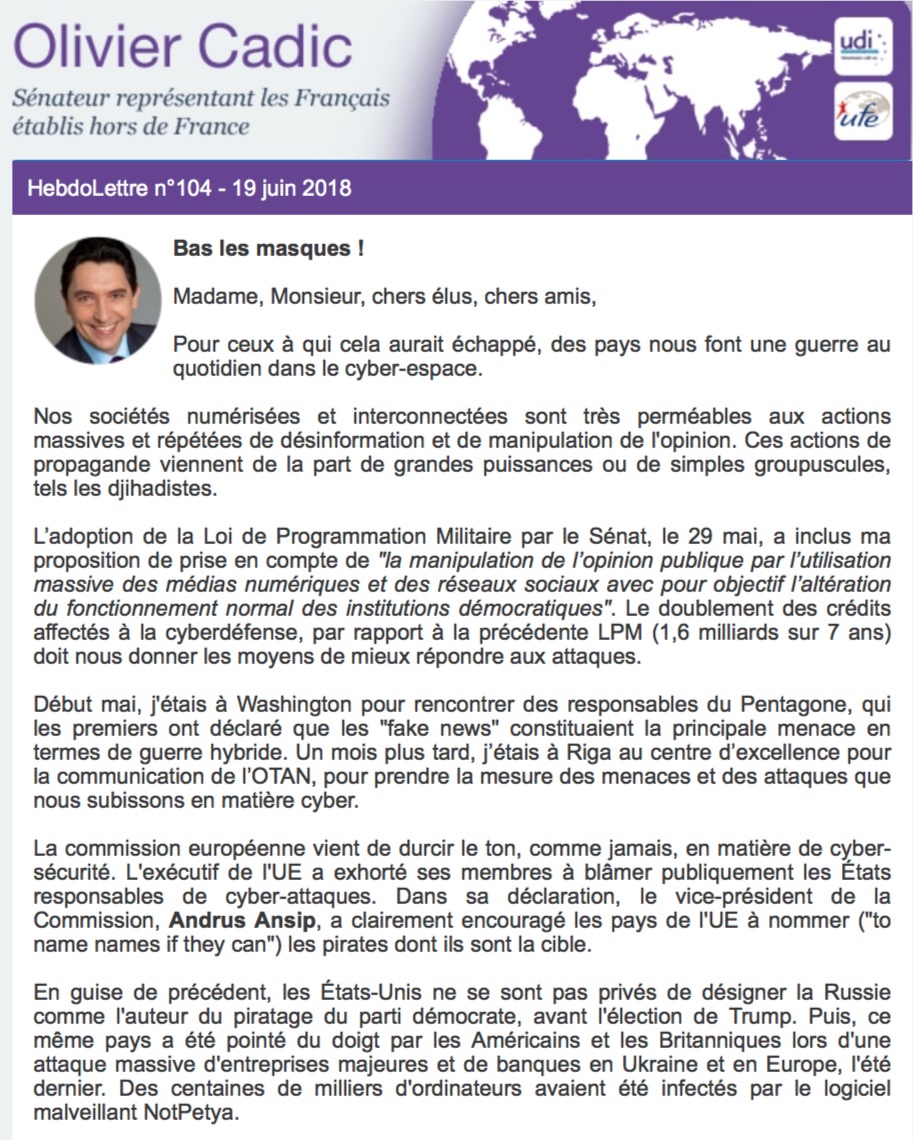 En charge du volet cyberdéfense au sein de la commission Affaires étrangères et Défense du Sénat, j’ai souhaité échanger avec des responsables du Pentagone pour préparer mon rapport dans le cadre de la loi de programmation militaire (Lire : ‘La LPM consacre l’importance de la cyberdéfense‘).