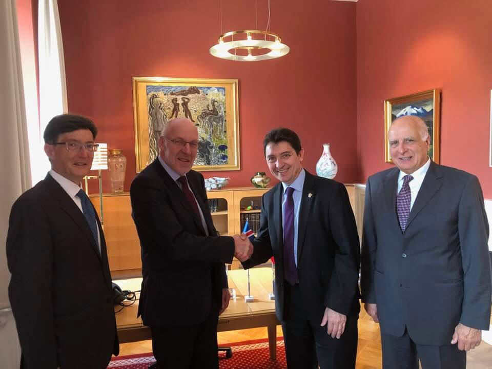 Dialogue fructeux avec Guðlaugur Thor Thordarson, ministre des Affaires étrangères, en présence de Graham Paul, notre ambassadeur, et Gérard Pignatel, conseiller consulaire.