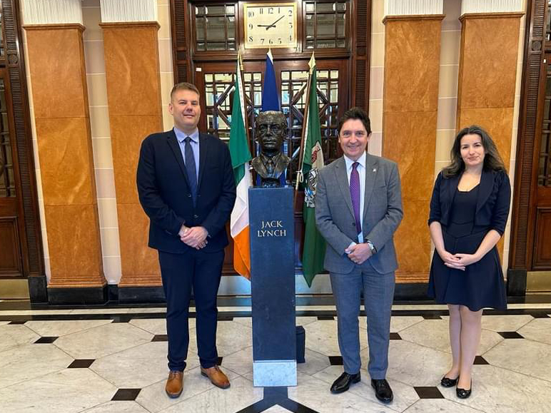 Un échange au Sénat irlandais avec deux collègues indépendants : Gérard Craughwell, commission Affaires étrangères et Défense en charge de la cyber, et Ronan Mullen, commission Enseignement, Recherche, Innovation et Sciences.