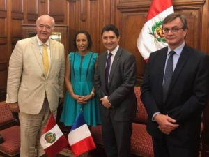 Entretien au Congrès péruvien avec Paloma Noceda, présidente du groupe parlementaire d’amitié Pérou-France et le député Victor Andres Garcia Belaunde, en présence de Renaud Collard, Premier conseiller à l’ambassade.