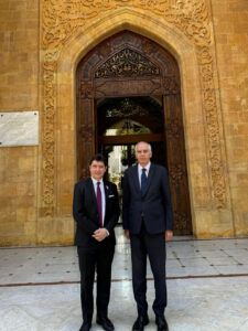 Merci à Samy Gemayel, chef du parti Kataeb, de m’avoir accueilli en compagnie de Nadia Chaaya, conseillère AFE, à Bikfaya, village situé à trente minutes de Beyrouth, pour me permettre d’échanger avec les députés de l’opposition sur la situation du Liban.
