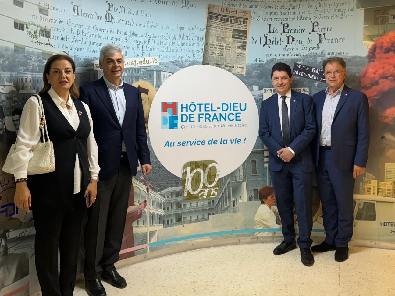 Accueilli par le professeur Georges Dabar, directeur des Affaires médicales, j’ai visité l’Hôtel-Dieu de France, un hôpital centenaire construit en 1913 et inauguré en 1923, en compagnie de Pierre Anhoury (Expertise France) et de Nadia Chaaya, conseillère à l’AFE.
