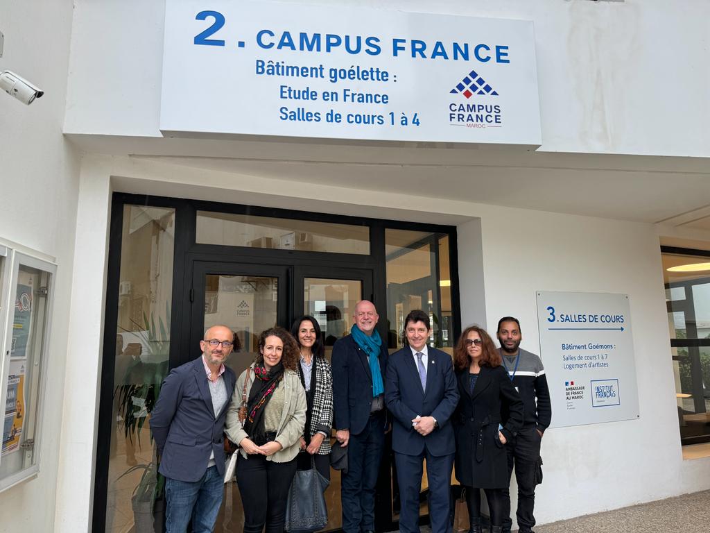 Rencontre avec Gaëtan Pellan, directeur de l’Institut français de Casablanca en compagnie de Christian Testot, consul général, dans le nouveau bâtiment Goélette, inauguré en 2021, pour abriter l’espace Campus France, placé sous la responsabilité de Yacine Saidi.