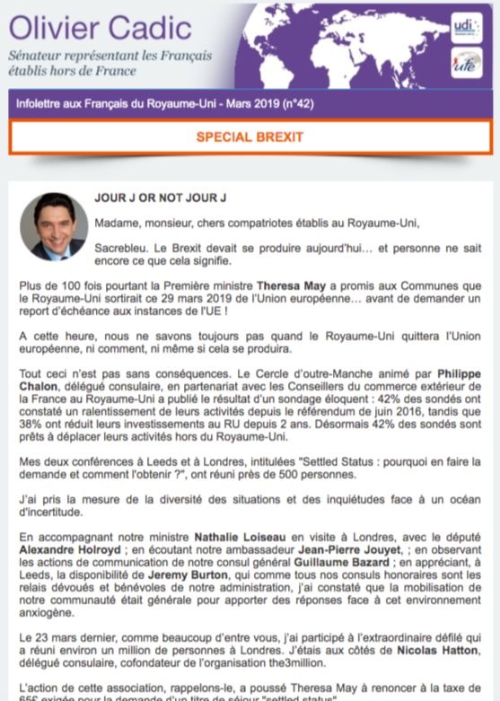 Si Theresa May a renoncé à la taxe de 65£ pour acquérir le Settled Status et si les démarches ont été drastiquement simplifiées, ce n’est ni grâce à la Commission européenne, ni grâce au gouvernement français. C’est grâce à l’association the3million, cofondée et présidée par Nicolas Hatton, délégué consulaire et tête de liste Un Monde de projets. Son activisme en faveur de la protection des droits des Européens au Royaume-Uni a nourri mes prises de position sur le Brexit au Sénat depuis 2016.