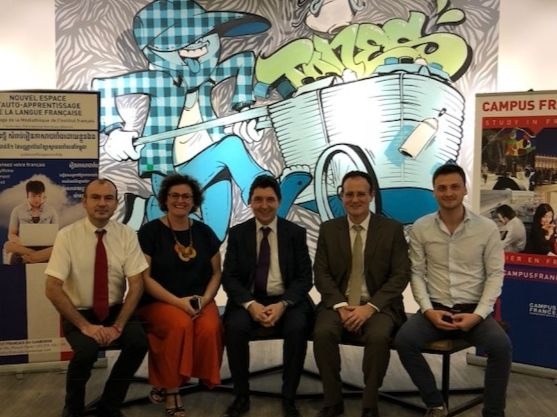 Visite de l’Institut français du Cambodge en présence de Laurent Triponey, Premier conseiller à l’ambassade et Eve Hermann, secrétaire générale de l’IFC.